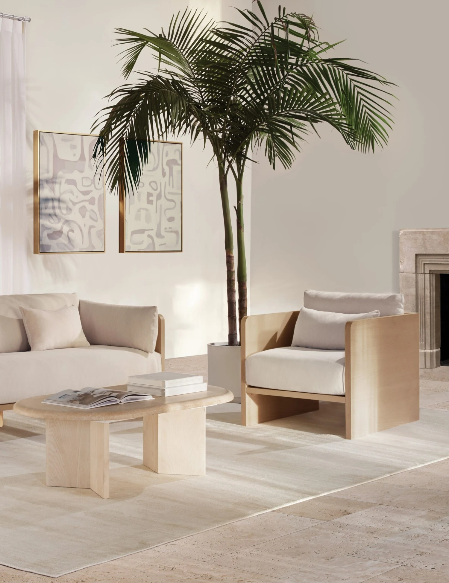 With its stylish tailoring, mixed materials, and muted colors, the Anders Accent Chair offers a tonal, minimal look. Wrapped in a streamlined, shelter-style frame, its ash veneer finish chicly dovetails with a basketweave performance fabric in ivory. Plus, plush cushions and lumbar pillow make this occasional chair a cozy lounging spot.