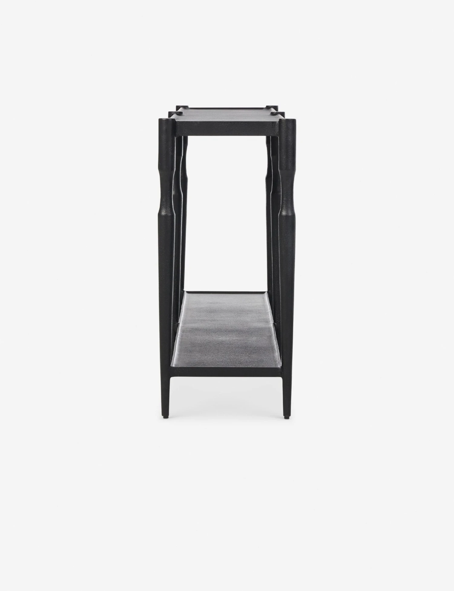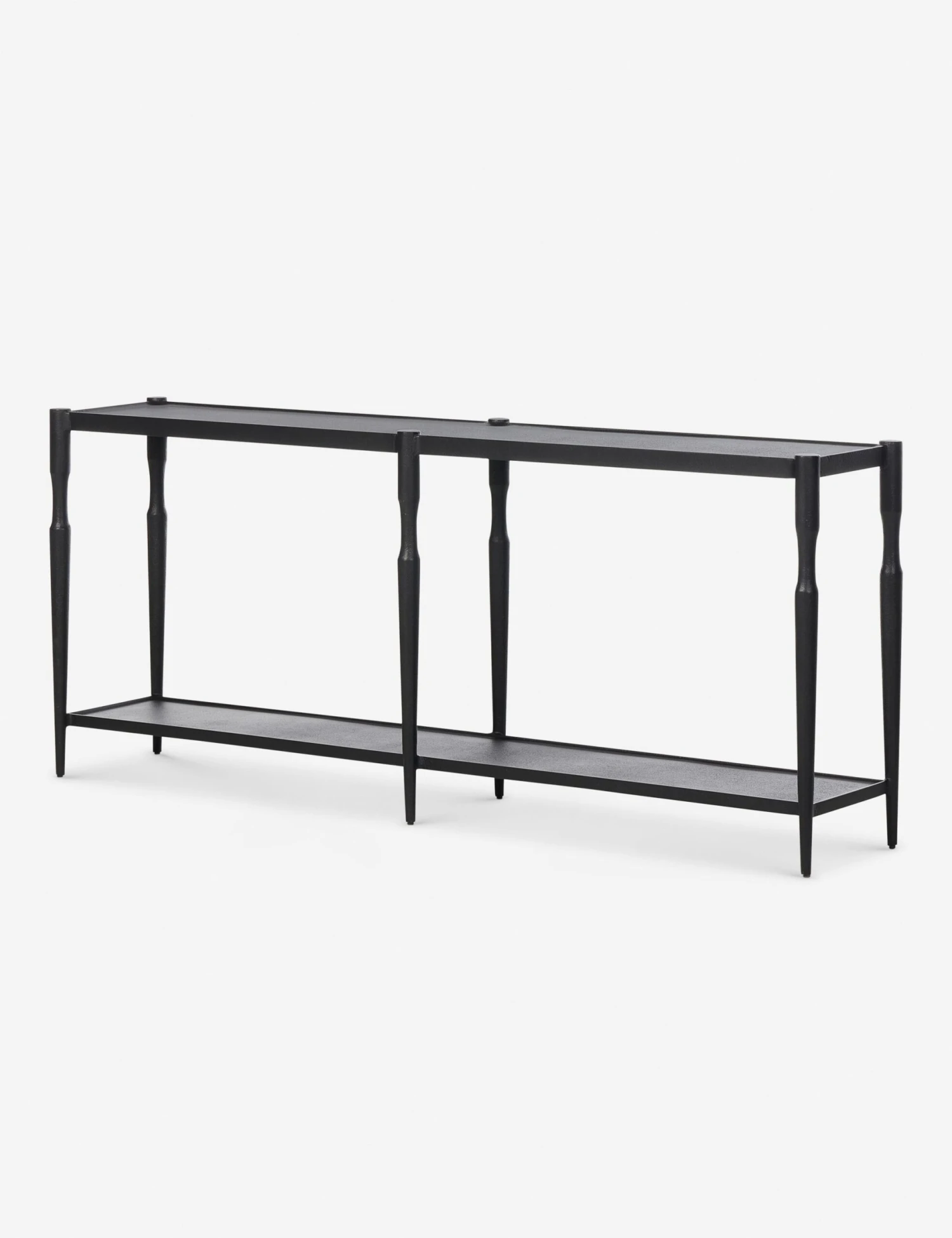 Four Hands brings their exceptional craftsmanship to a timeless collection rooted in Amber Lewis’ perennial California style. Cast iron legs frame a tray-style top with a lower shelf for added storage in the Augusta console table. This classic black console table folds into transitional and modern settings with understated impact.