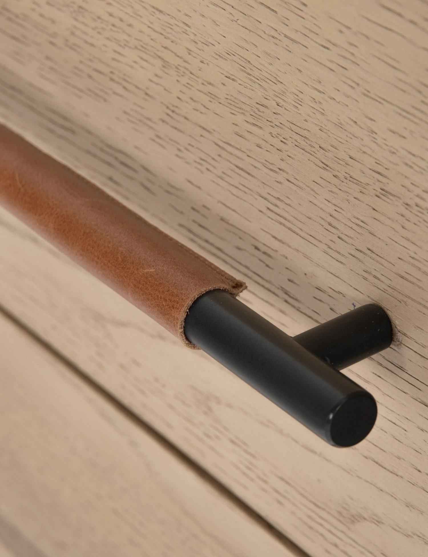 With its clean lines, sandy finish, and leather accents, this dresser brings a refined, minimalist effect to your bedroom. Constructed from solid oak and an oak veneer, it’s complemented by iron hardware and wrapped in tan top-grain leather. Three roomy drawers provide tons of storage space.