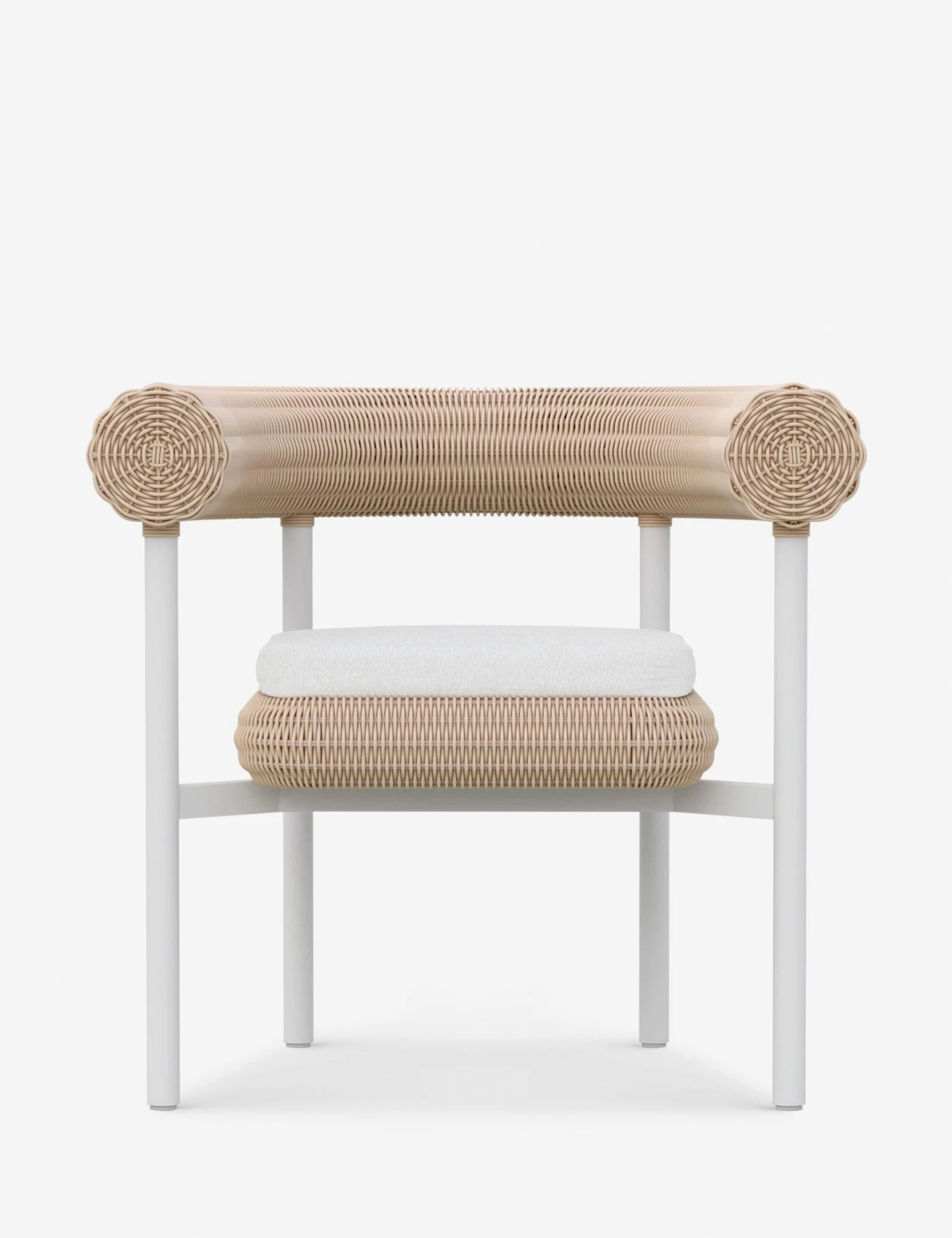 Thoughtfully dynamic and artfully refined—the Castaneda dining chair elevates indoor-outdoor style. The soft-lined silhouette is woven from all-weather wicker and topped with a removable performance cushion to bring plenty of texture with a modern edge. This chic dining seat sets a place for sculptural appeal at your table.