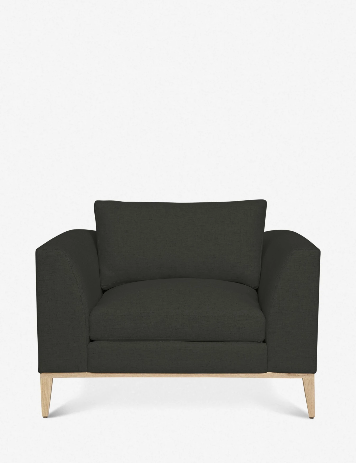 The Charleston collection boasts sleek minimalism for defined, architectural style. Sprawl out in luxurious ease bolstered by the sizable arms and deep plush seat of this lounge chair. A natural oak base complements its upholstery and tailored profile for a refined look that will elevate a transitional space.