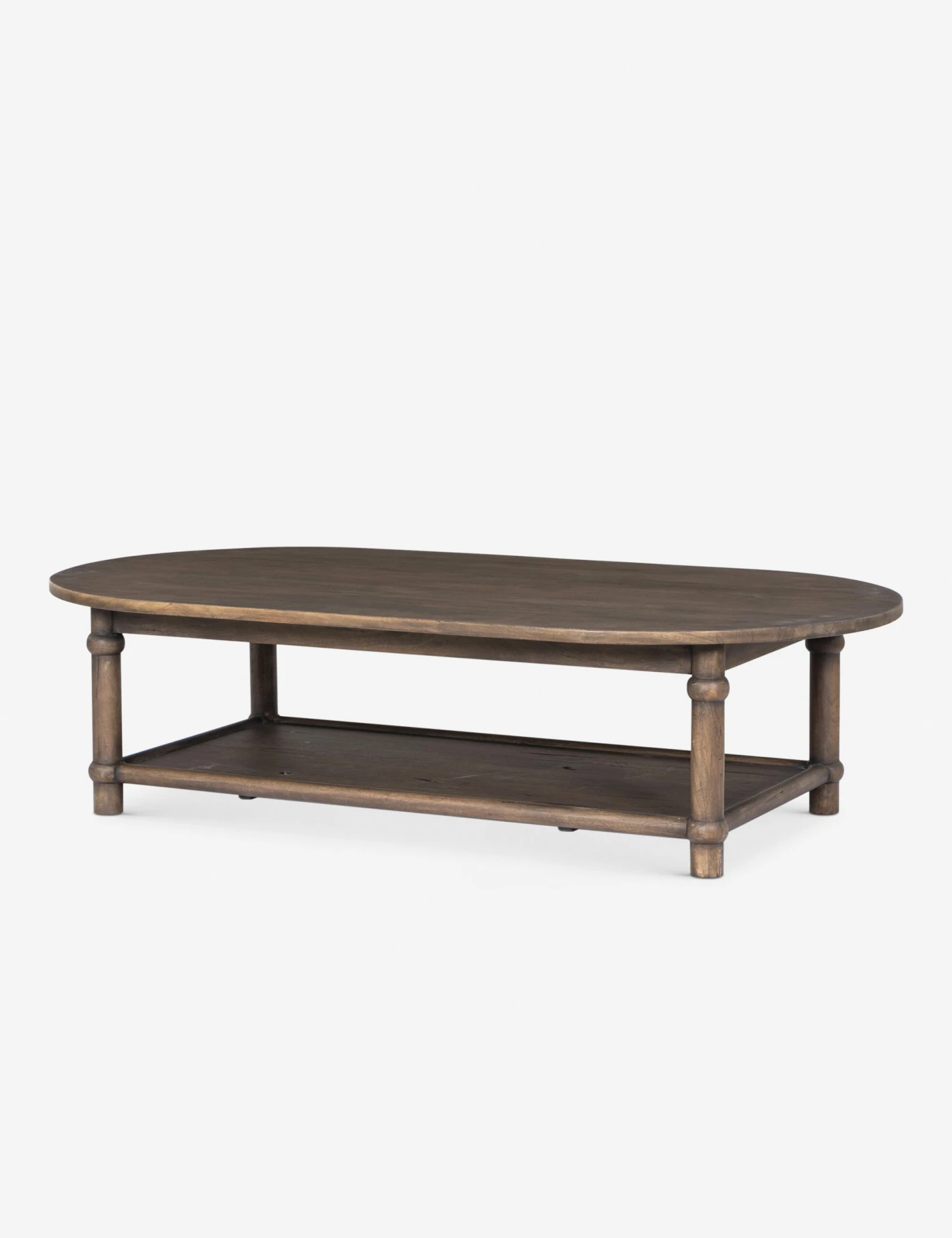 Four Hands brings their exceptional craftsmanship to a timeless collection rooted in Amber Lewis’ perennial California style. Blending vintage and modern design elements, this wood coffee table is an inviting centerpiece. The coffee table’s oval top is curved and refined, while a full lower shelf adds a perfect place for books and decor.