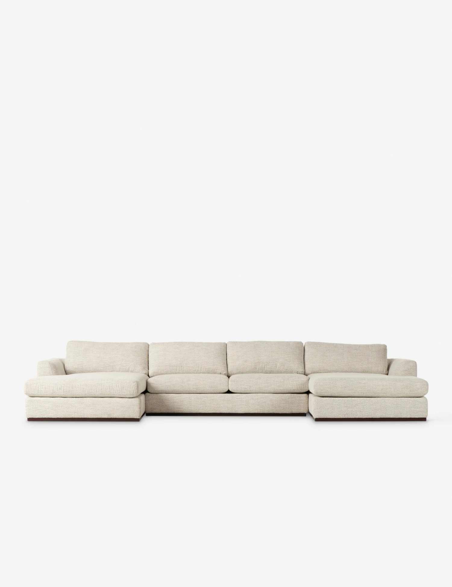 The Daniston sectional brings elegance to comfort with its clean, linear profile and loose back cushions. A wood plinth base and textural performance upholstery set off the design with an elevating touch while ensuring an easy-care anchor piece for everyday lounging.
