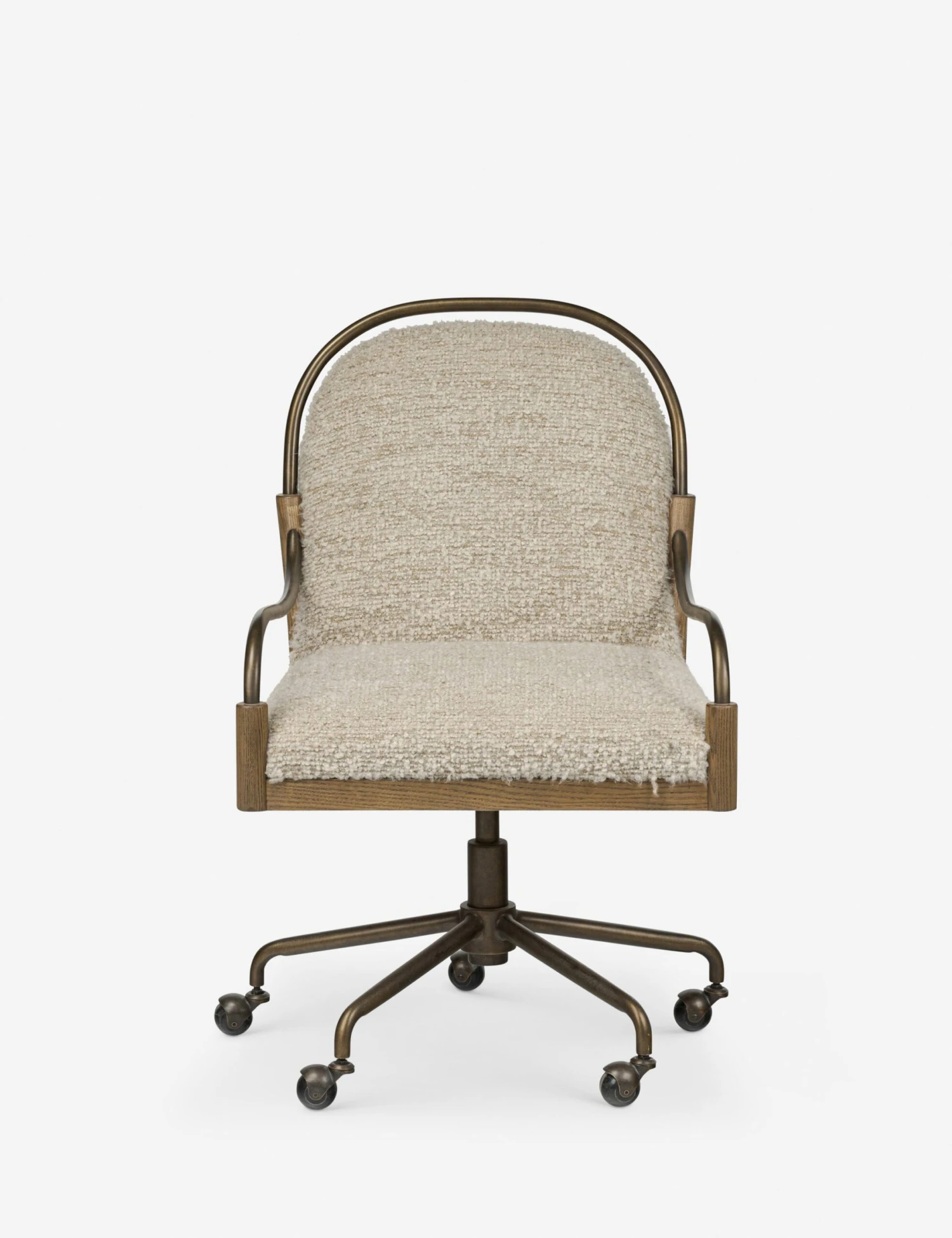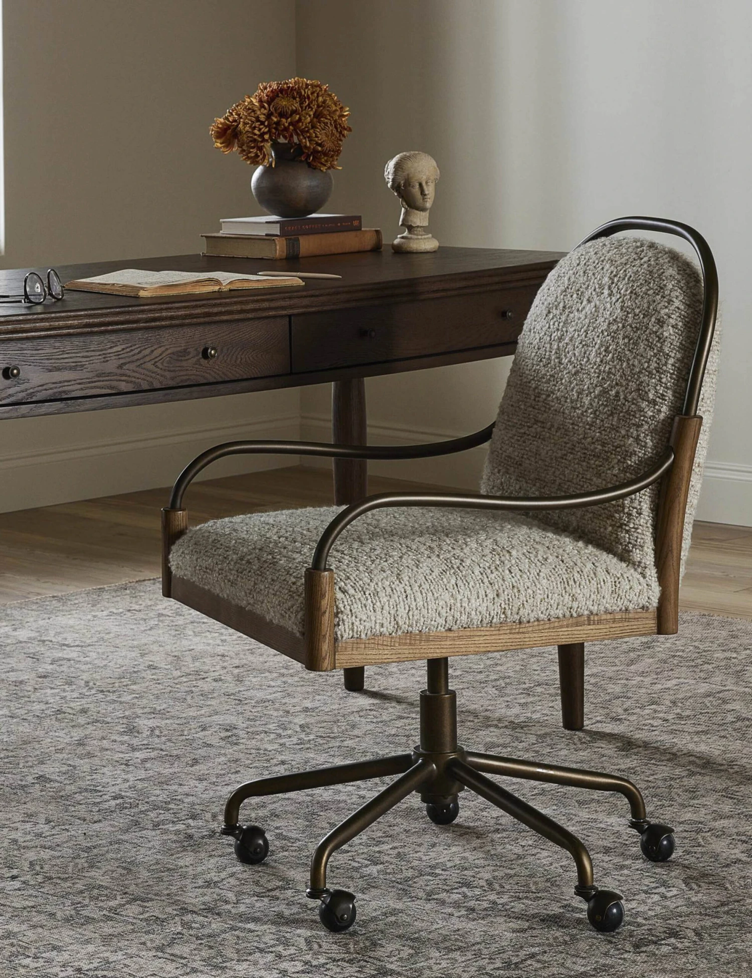 Four Hands brings their exceptional craftsmanship to a timeless collection rooted in Amber Lewis’ perennial California style. An elegant metal frame with touches of wood and plush upholstery offers a chic blend of form and function in the Demi office chair. A swivel seat and rolling casters outfit the classic design with a dynamic touch.