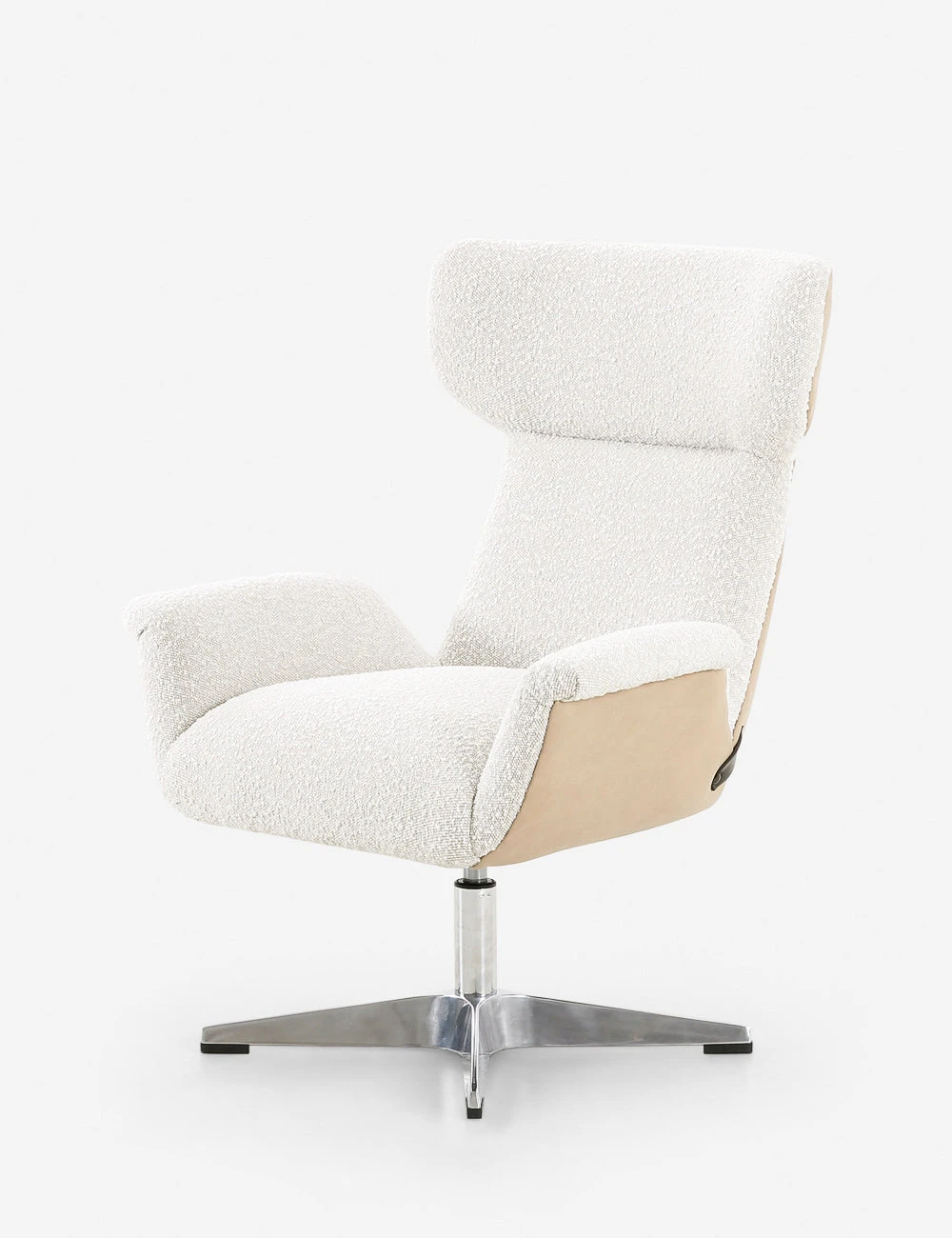 Create a statement with this tone-setting modern desk chair. A sculpted wing silhouette, plush boucle-like upholstery, and polished swivel base come together in a design that offers endless comfort and high-style appeal.