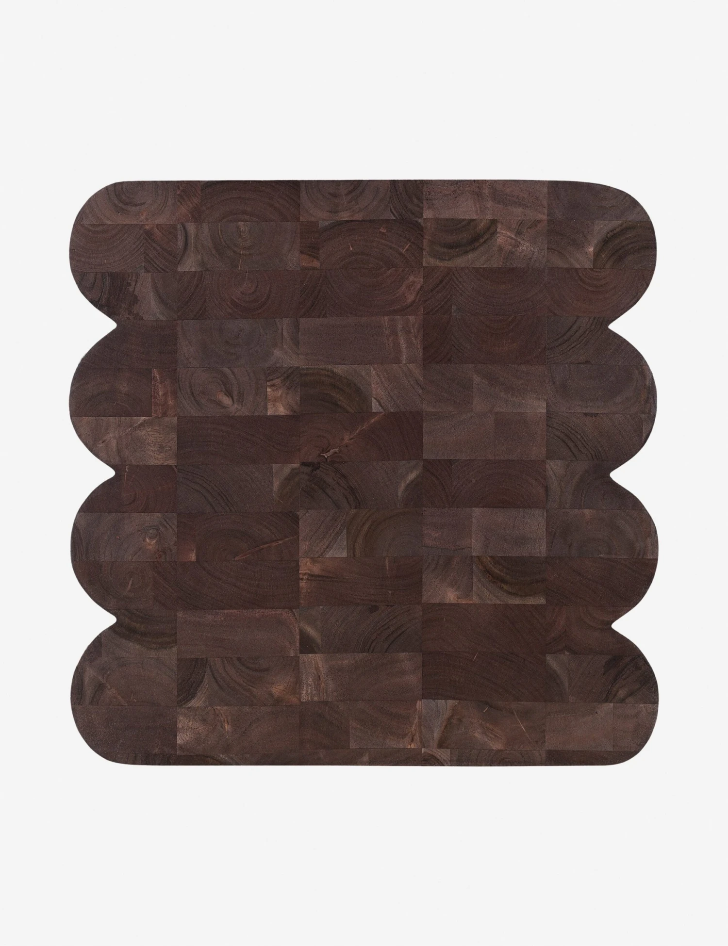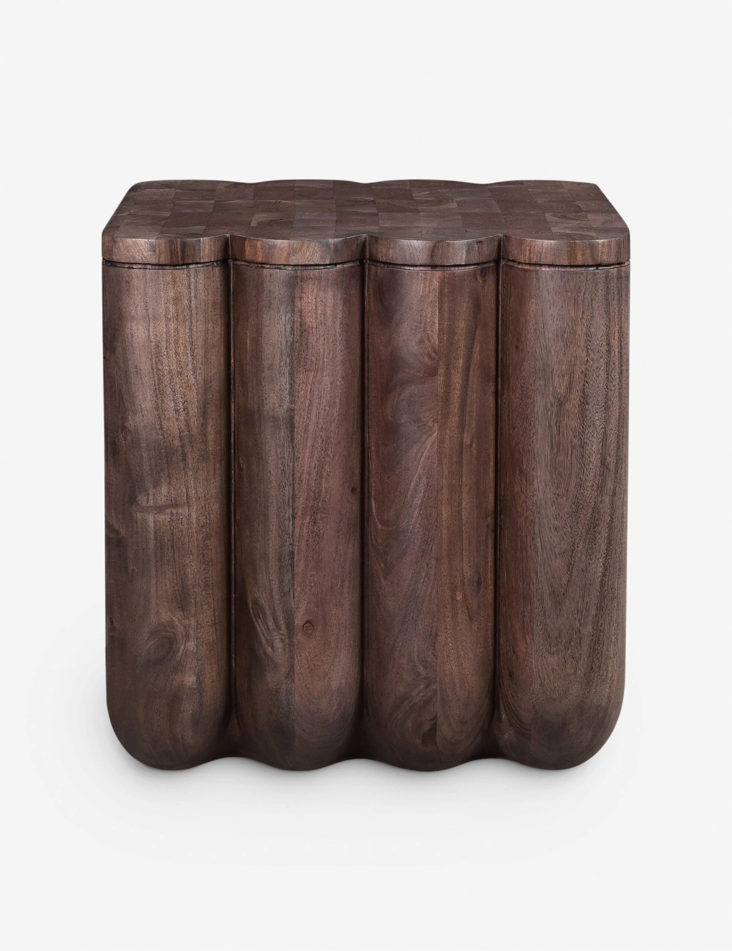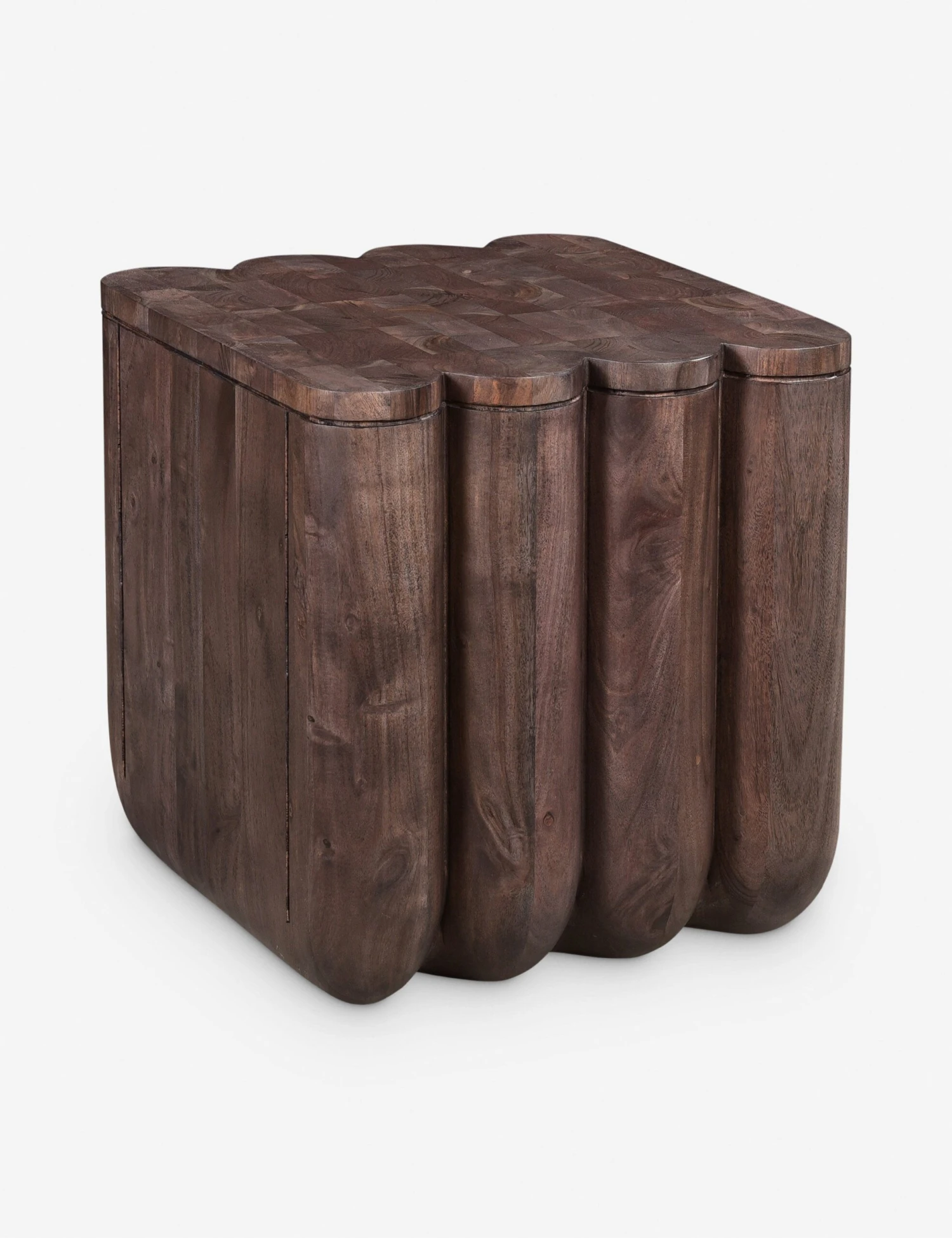 The Emsy side table is a soft statement in acacia. Scalloped edges fashion a dynamic silhouette contrasted by a clean plane on the other sides for a beautiful balance of form. With its joinery details and the wood grain’s dramatic depth under a rich espresso finish, this small end table is set for outsized impact in your design.