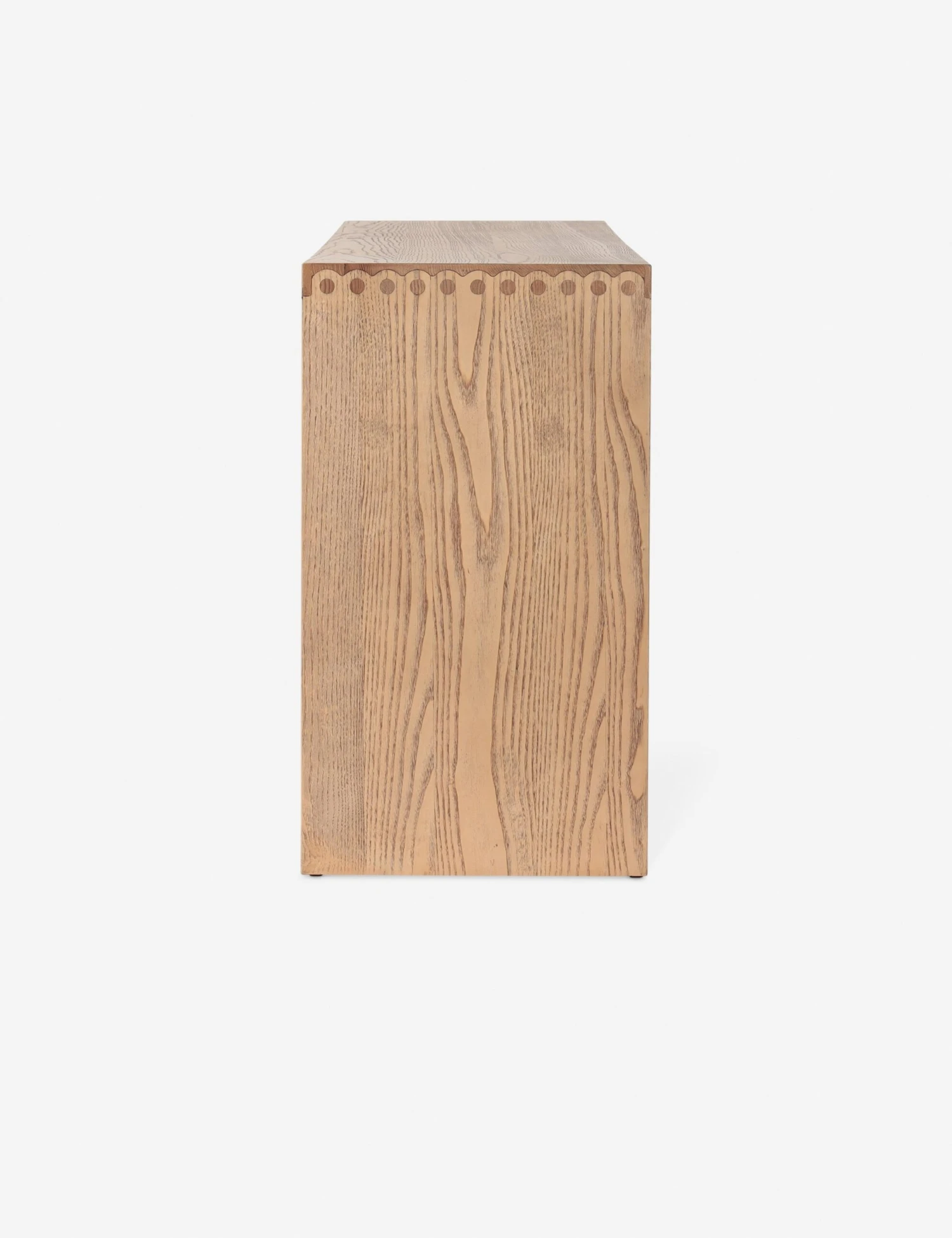 Four Hands brings their exceptional craftsmanship to a timeless collection rooted in Amber Lewis’ perennial California style. Scalloped detailing brings depth and flair to the clean lines of this modern console table. The waterfall design feels casual yet refined, with a lower shelf for added storage—an elegant addition whether styled as a living room accent or an entryway table.