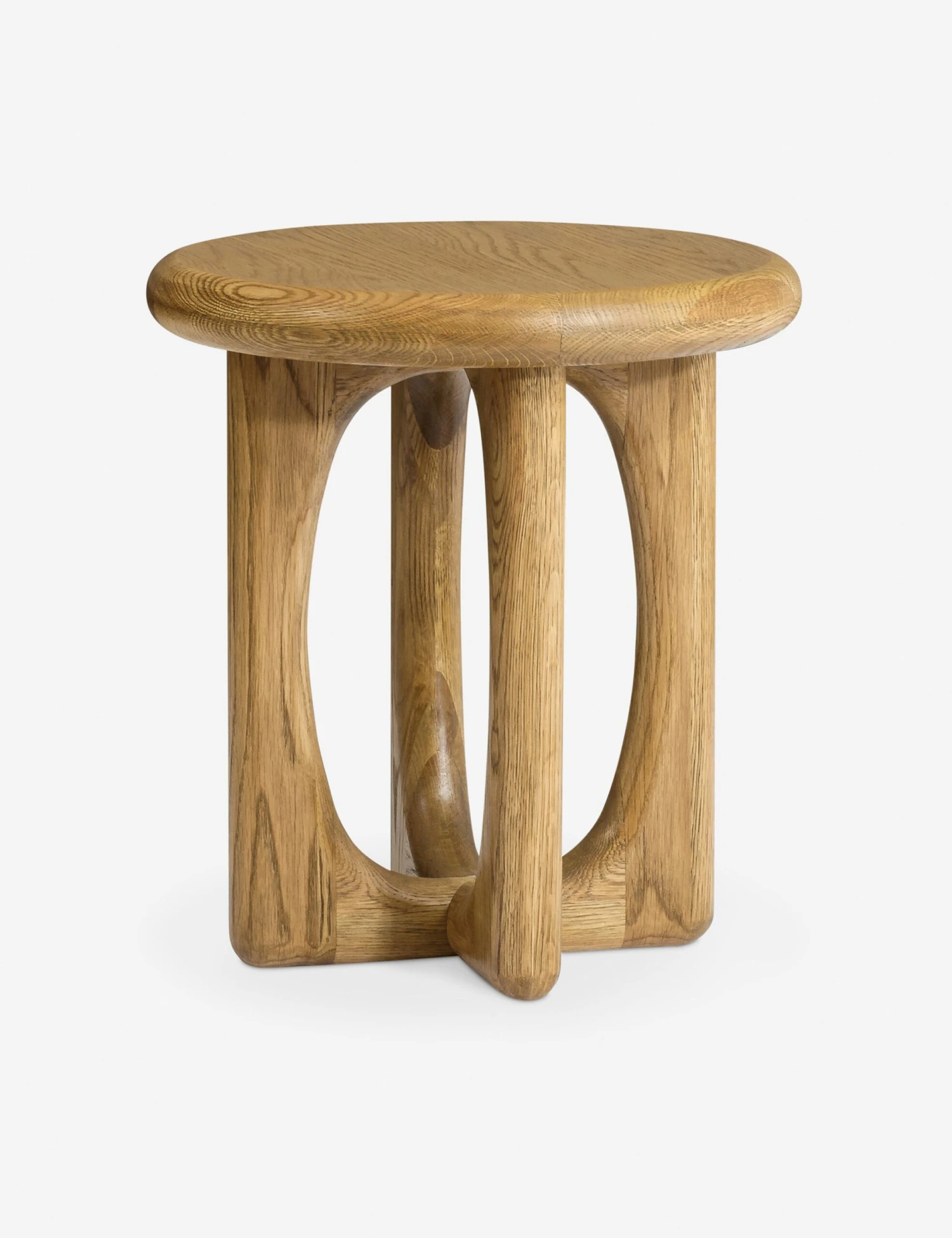 The Hesh side table pairs soft lines with the natural grain beauty of oak. Carved cutouts on the legs bring a sculptural quality to the design—offering an airy look with a sturdy bearing. We love this piece styled as a simple end table next to a modern sofa or chair.