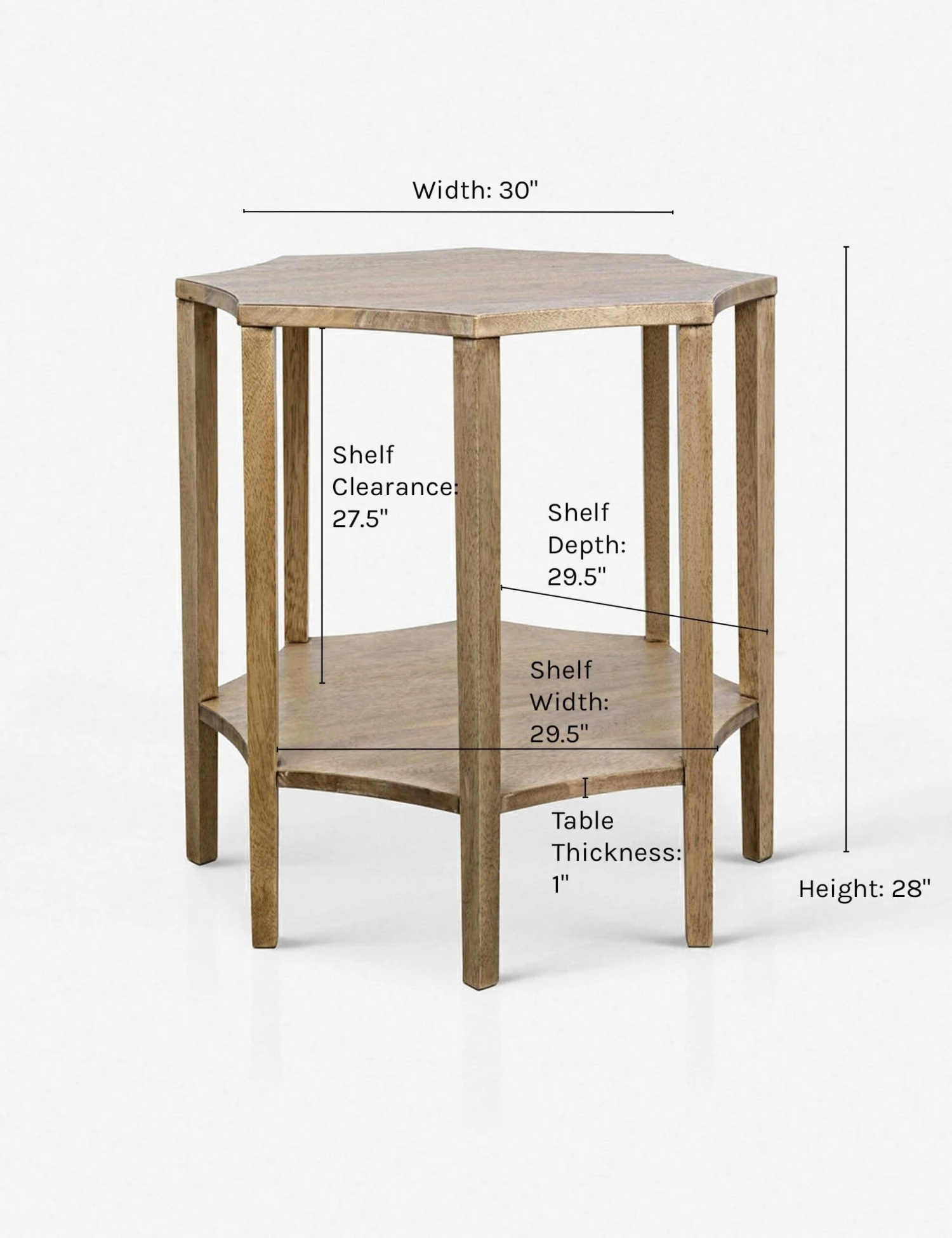 Crafted in a unique octogonal shape from walnut, this piece has a transitional, art deco feel. We love it paired with a velvet-tufted sofa or wing-backed headboard upholstered in a rich jewel tone.