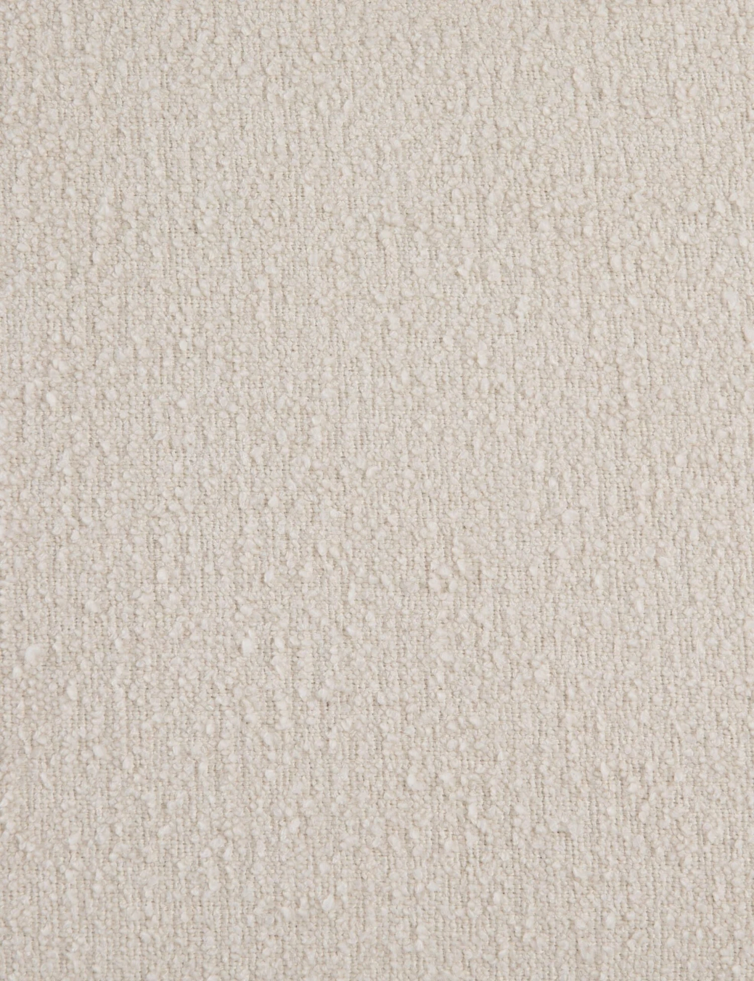With its textural and ivory-colored boucle upholstery, plush seat, and slim profile this decorative chair is a luxe, cozy addition to your home. Modern touches like a gunmetal-finished iron base and piped seams on the seat and back cushions add a stylish contrast. We think this accent chair looks great in a reading nook or by a window.