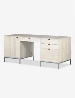 The Keegan desk sets a light tone for your workspace with its cream marble top and amber ash frame. The tapered legs and three drawers fashion an airy silhouette with a striking balance of function and form, perfect for a curated office or bedroom corner.