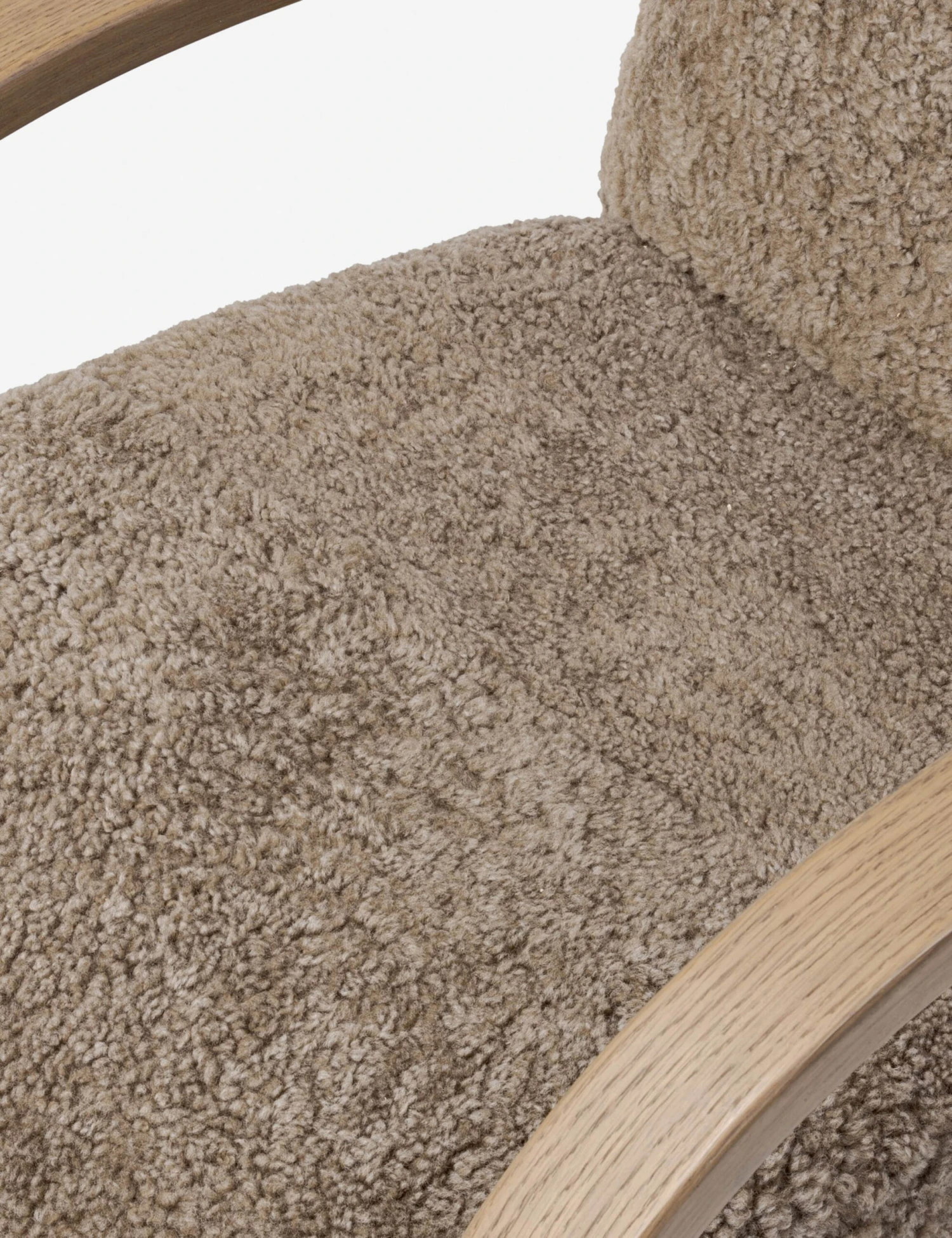 The Kisling accent chair stands out with its curved bentwood frame and plush shearling-inspired upholstery. The bold silhouette brings a mid-century edge to your space, balancing comfort and sculptural appeal. Let this chair anchor a corner on its own or flank it with a small table to perch your drink.