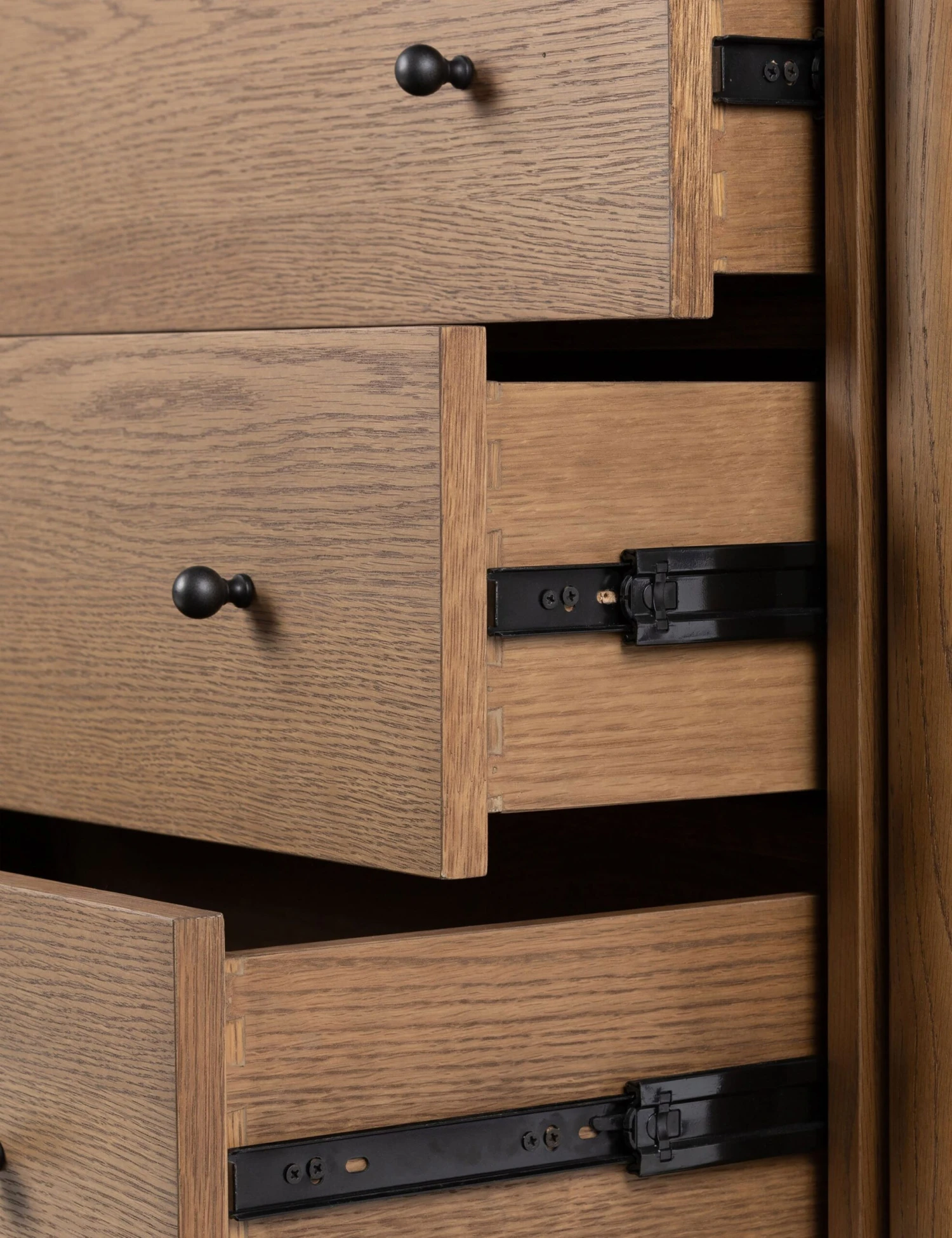 The Kisner dresser brings transitional appeal to oak. Rounded legs hold a clean-lined frame in a warm finish that showcases the natural grain. Six spacious drawers with knob pulls offer ample storage.