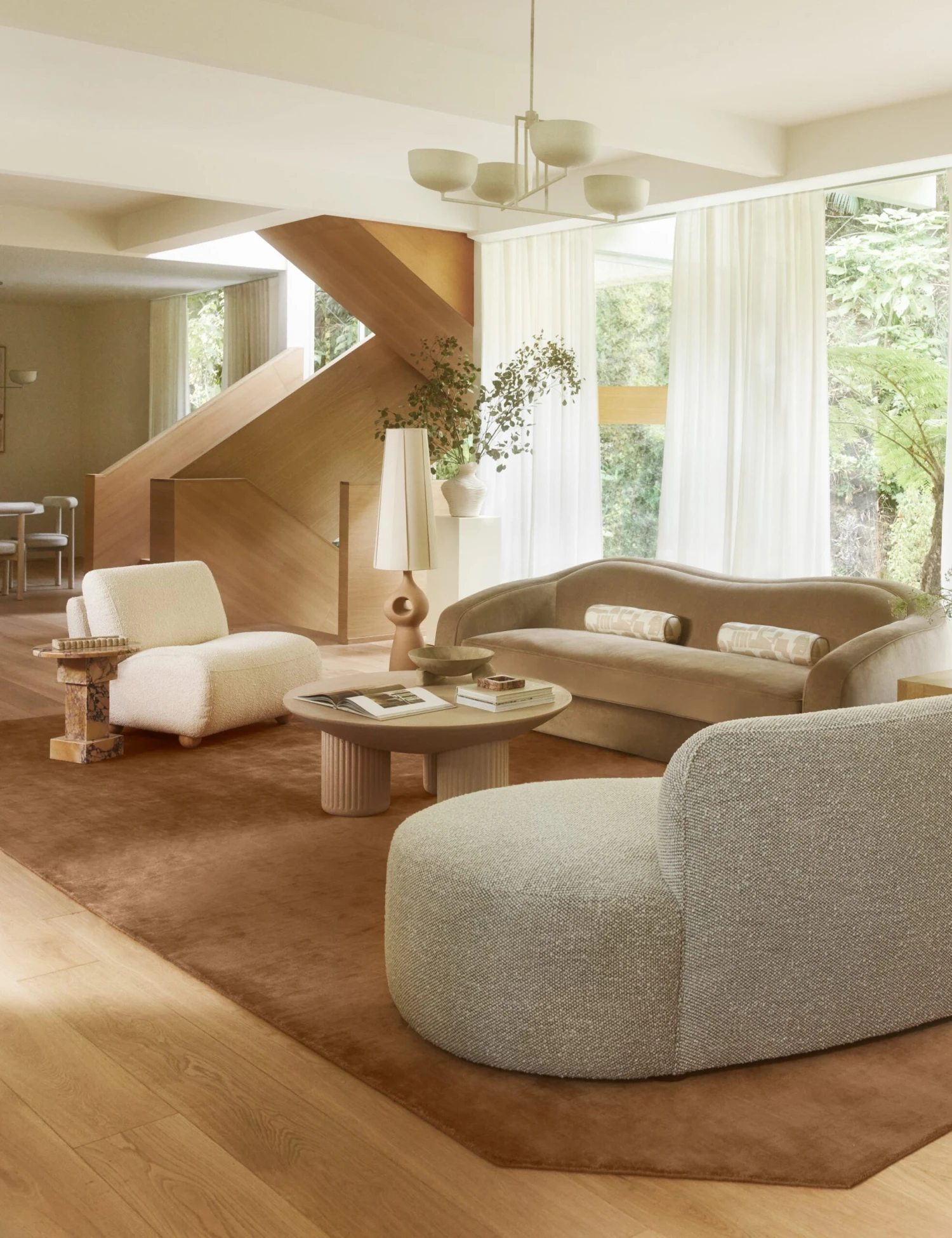 Our Kya accent chair brings a laid-back touch to modern design. Its streamlined silhouette is upholstered in textural bouclé, trimly tailored for comfort. Pair this chair with a chic side table and statement lamp for an artful take on a reading nook.