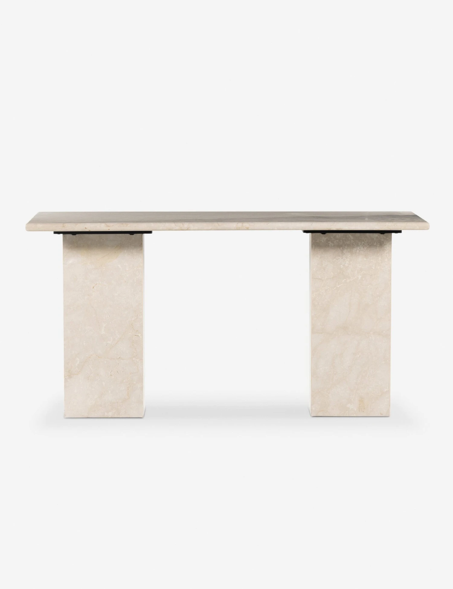 Clean edges and luxe materiality evoke notes of retro Italian design in this solid marble desk. The cream coloring offers a soft tone to the polished edges, inspiring a look of crisp modernity. Float this desk in the room to anchor your home office with a showstopping focal point.