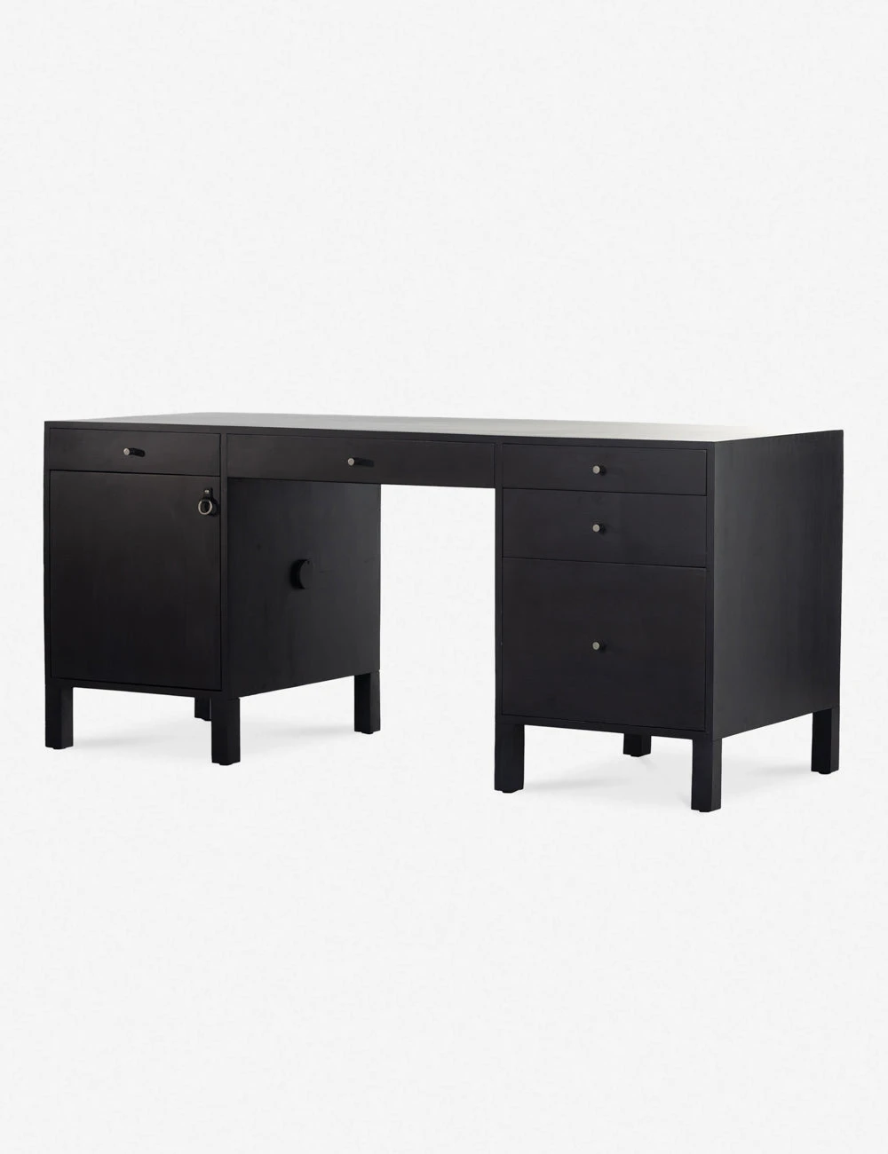 Simply inspired, this solid dry-washed poplar desk combines clean lines with dovetail joints in a Shaker-inspired design. This desk is finished in a light neutral tone and fitted with iron and leather hardware in a versatile, understated style. The fully finished back lets you float this desk anywhere in the room.