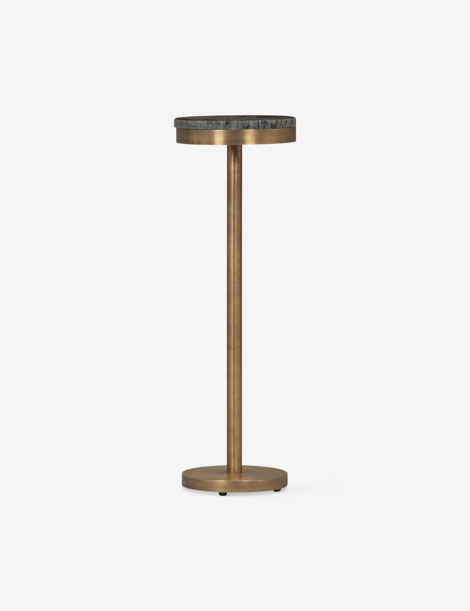 Add some polish to your palette with the Oswald side table. The round marble top sits on the brass-finished base offering a quiet sophistication to the room. This chic end table provides the perfect place to perch drinks—a refining touch for a social lounge.