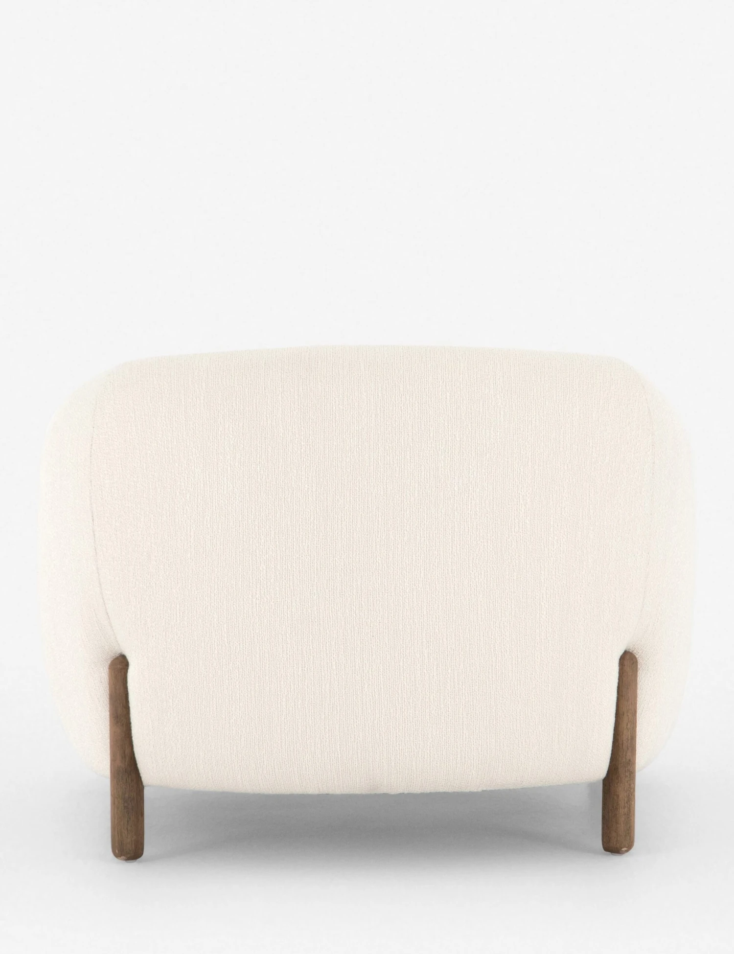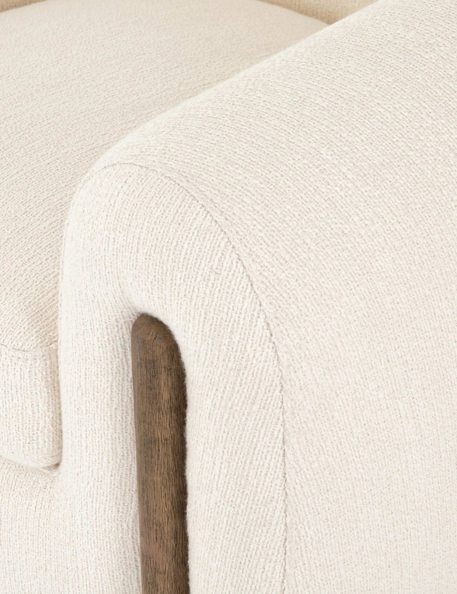 A decorative chair with an inviting, cozy look. Adding this large, rounded accent chair to your living room or bedroom brings natural elements into the space, thanks too textured fabric and grainy wood legs.