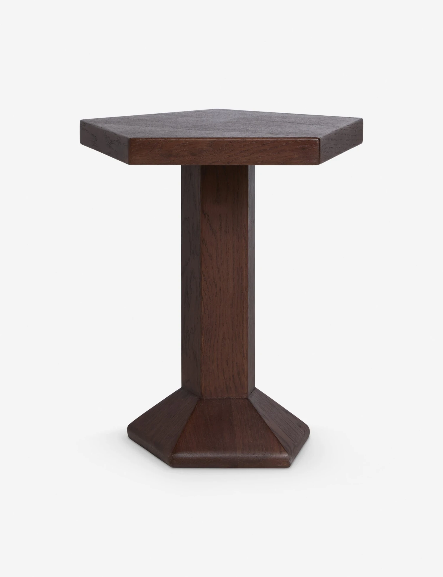Elevate your edit with a modern side table rooted in natural grain warmth. Rainey’s pentagonal shape offers a strong geometric character reflected in the angular lines of its pedestal base. Pair this side table with soft silhouette seating for a lovely play of contrast in form.