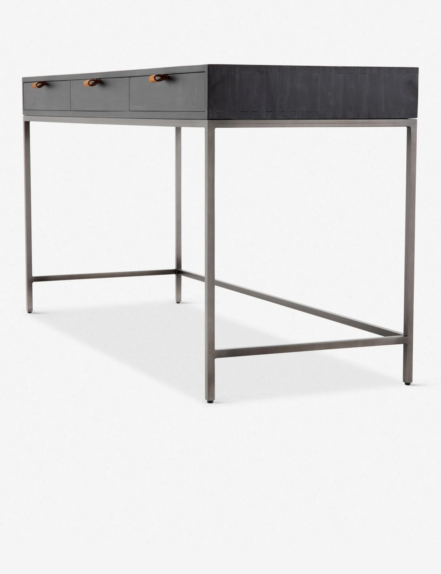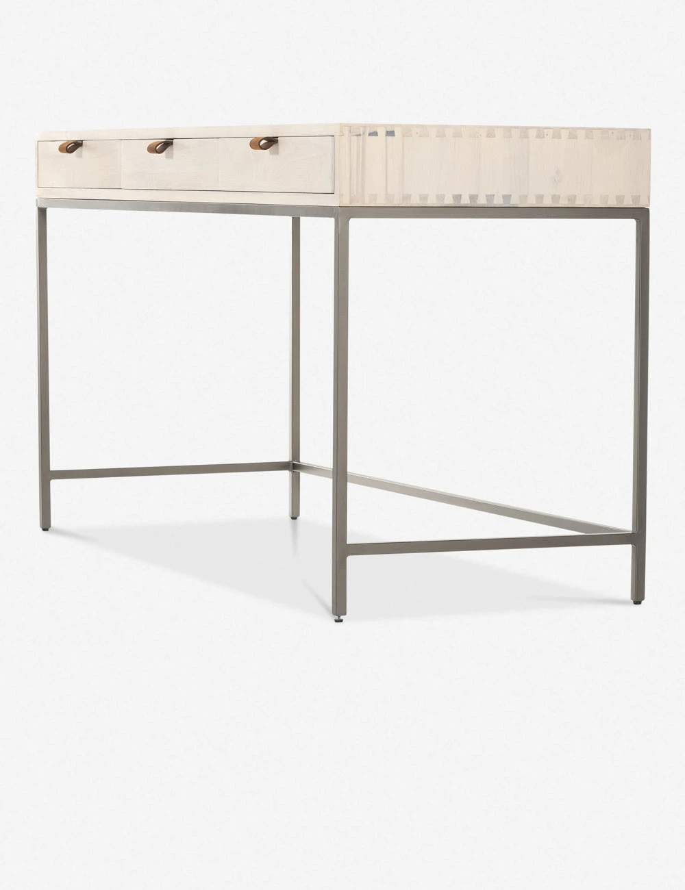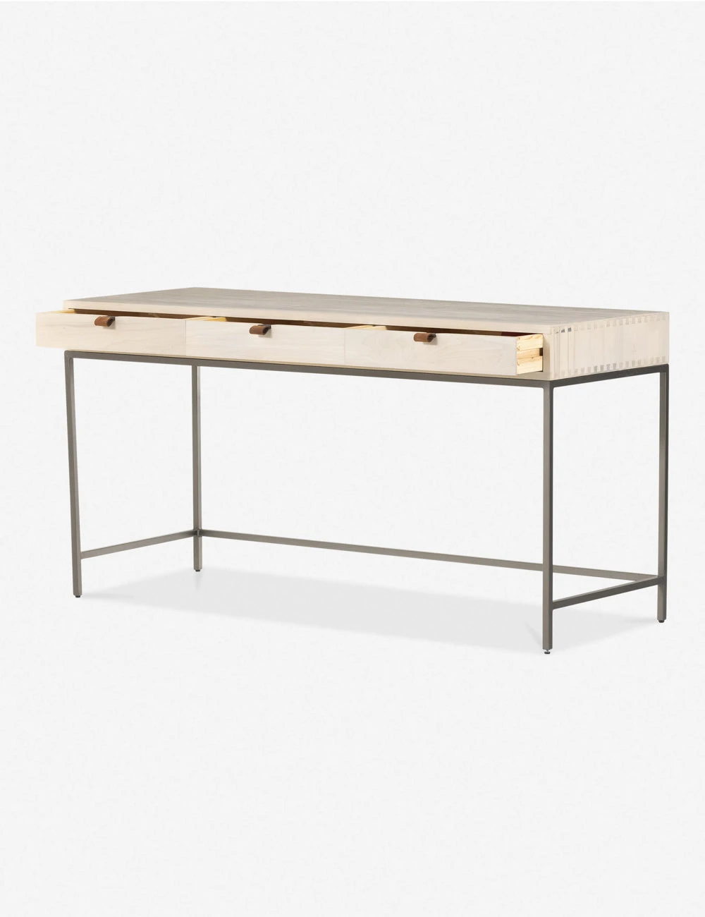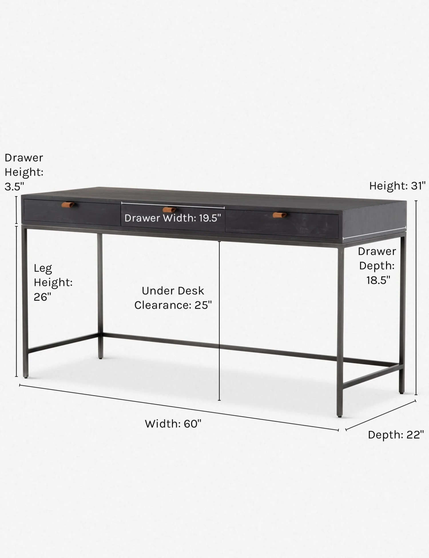 Keep your style grounded (and super organized) with this tall wooden writing desk. This home office desk features elements of mid-century aesthetics and a mixed material construction pairing solid poplar with a slim iron base and top-grain leather drawer pulls.