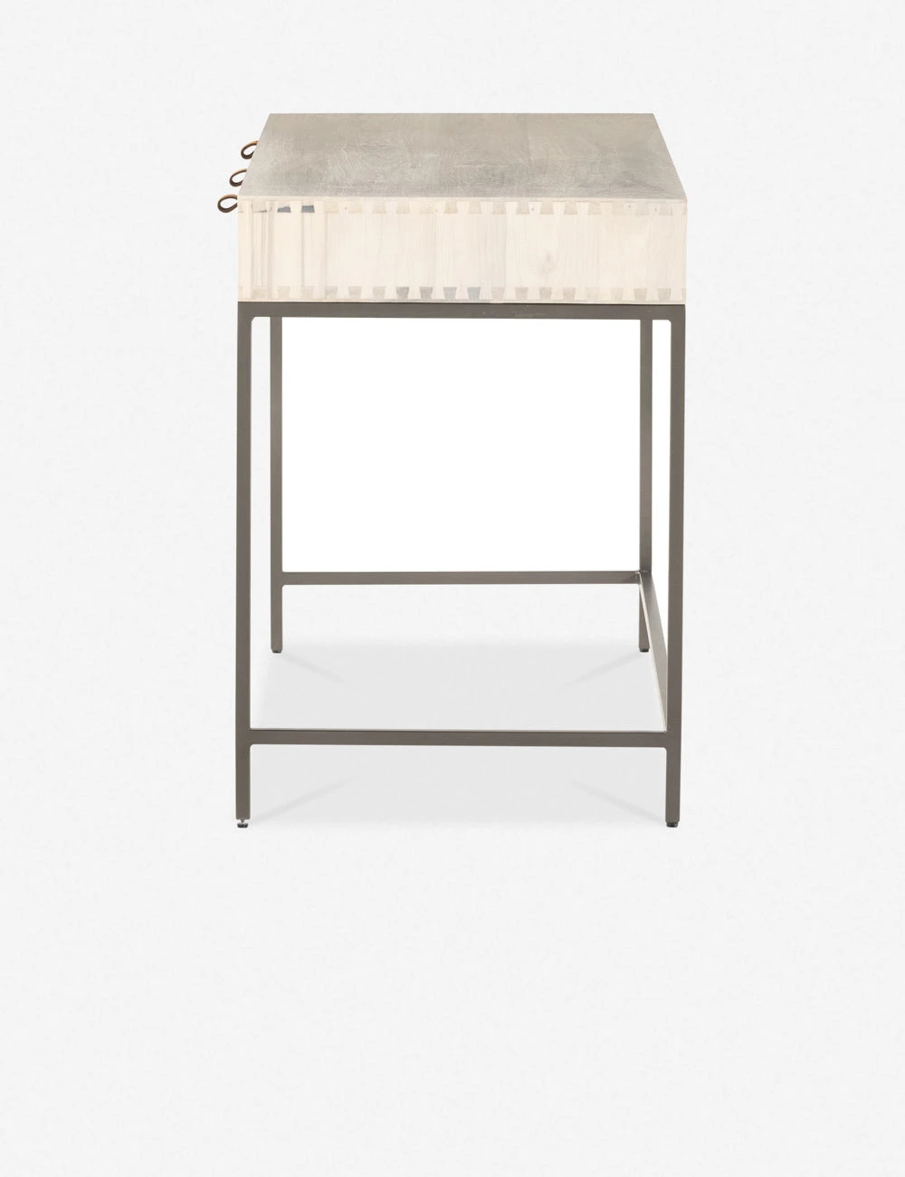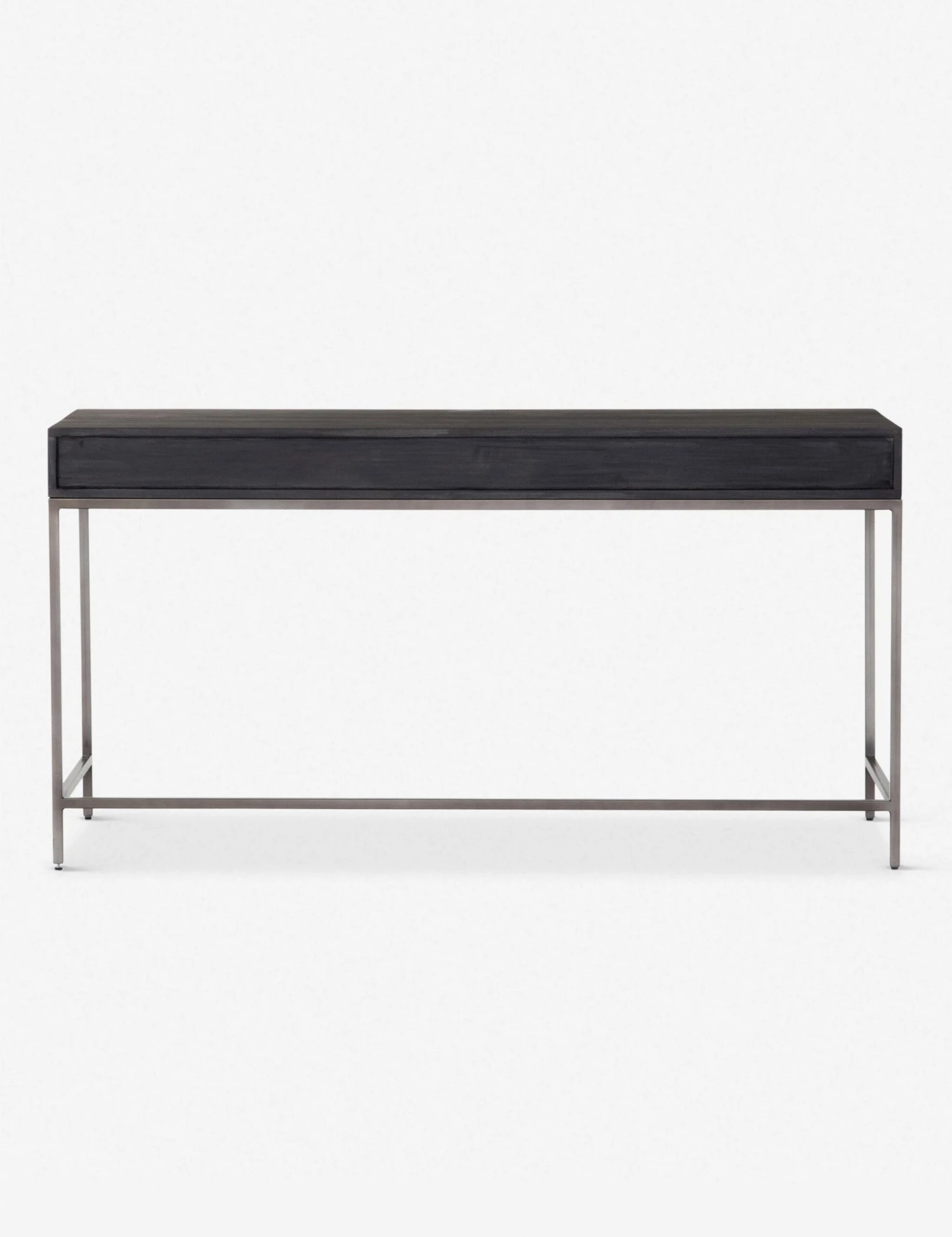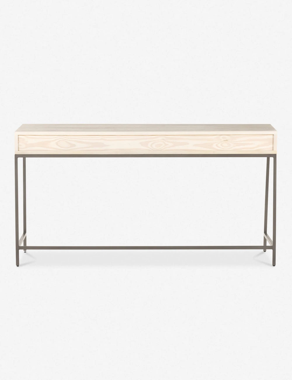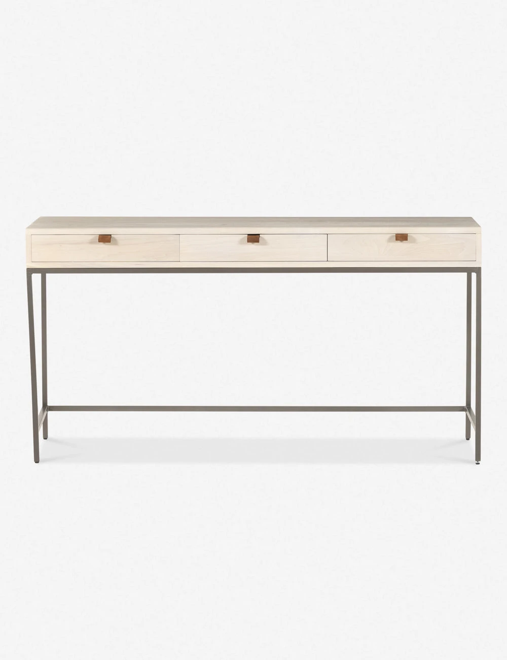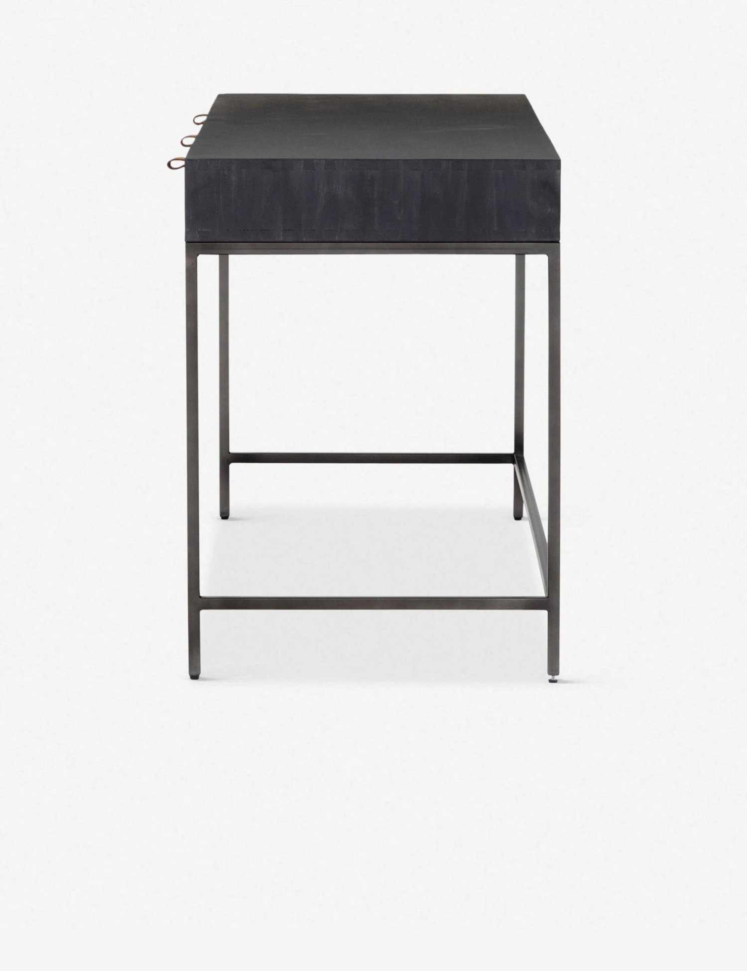 Keep your style grounded (and super organized) with this tall wooden writing desk. This home office desk features elements of mid-century aesthetics and a mixed material construction pairing solid poplar with a slim iron base and top-grain leather drawer pulls.