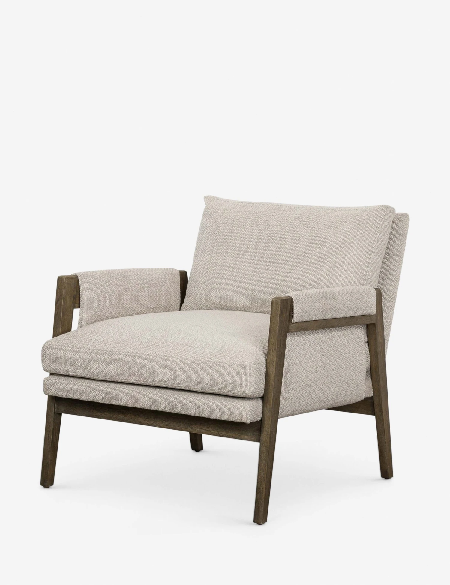 Add this living room accent chair to your seating for a dose of easy modern style. This side chair’s wooden frame features casual angles and a fabric seat, complete with wrapped details at the arms. Fabric cushions complete make this a decorative chair that’s both inviting and ultra-versatile.