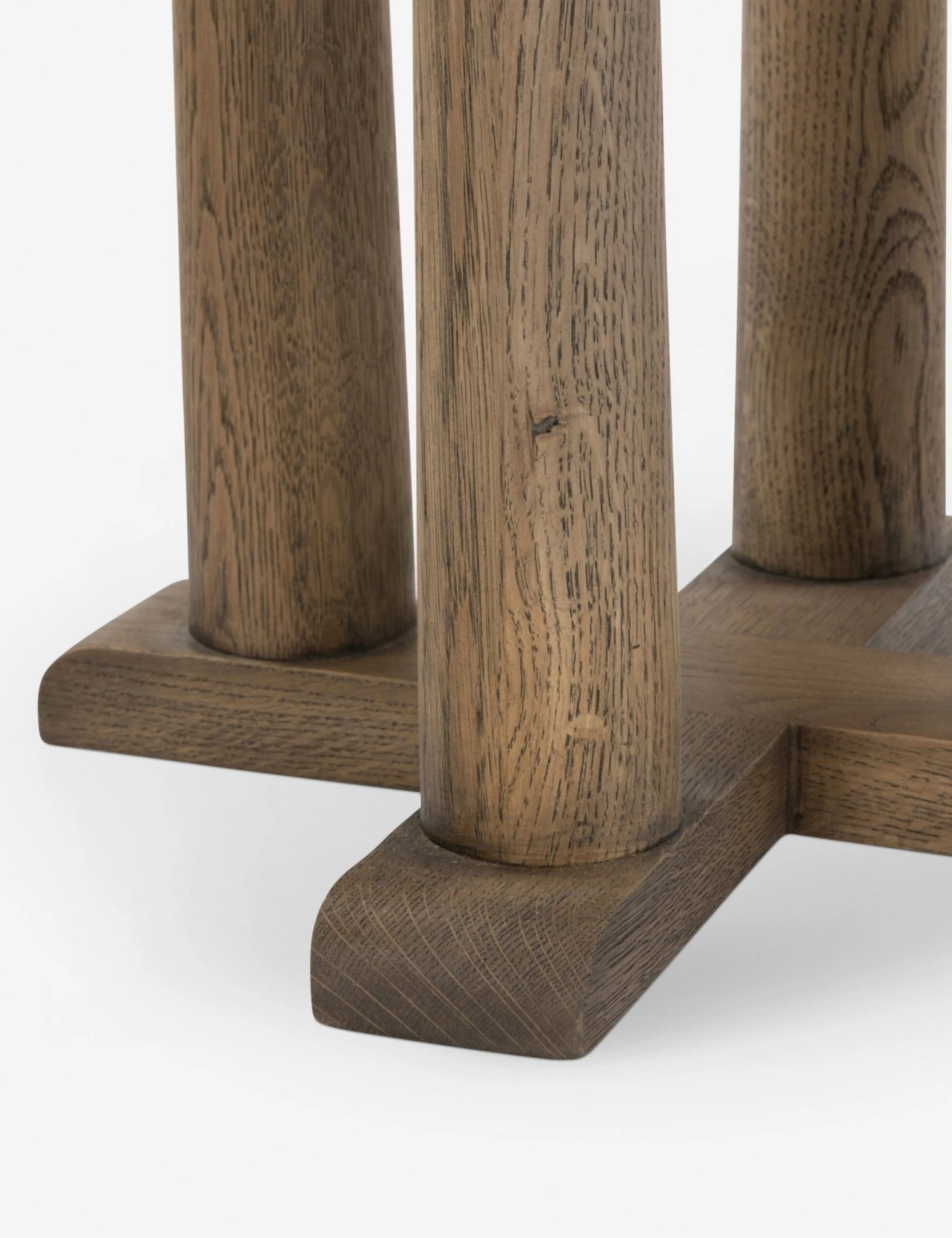 Rooted in timeless design, the Seva stool blends a sculptural cradle base with gently tapered posts in solid oak. Its warm finish and compact form make it a versatile accent, whether next to a sofa, at the foot of a bed, or tucked beneath a console.