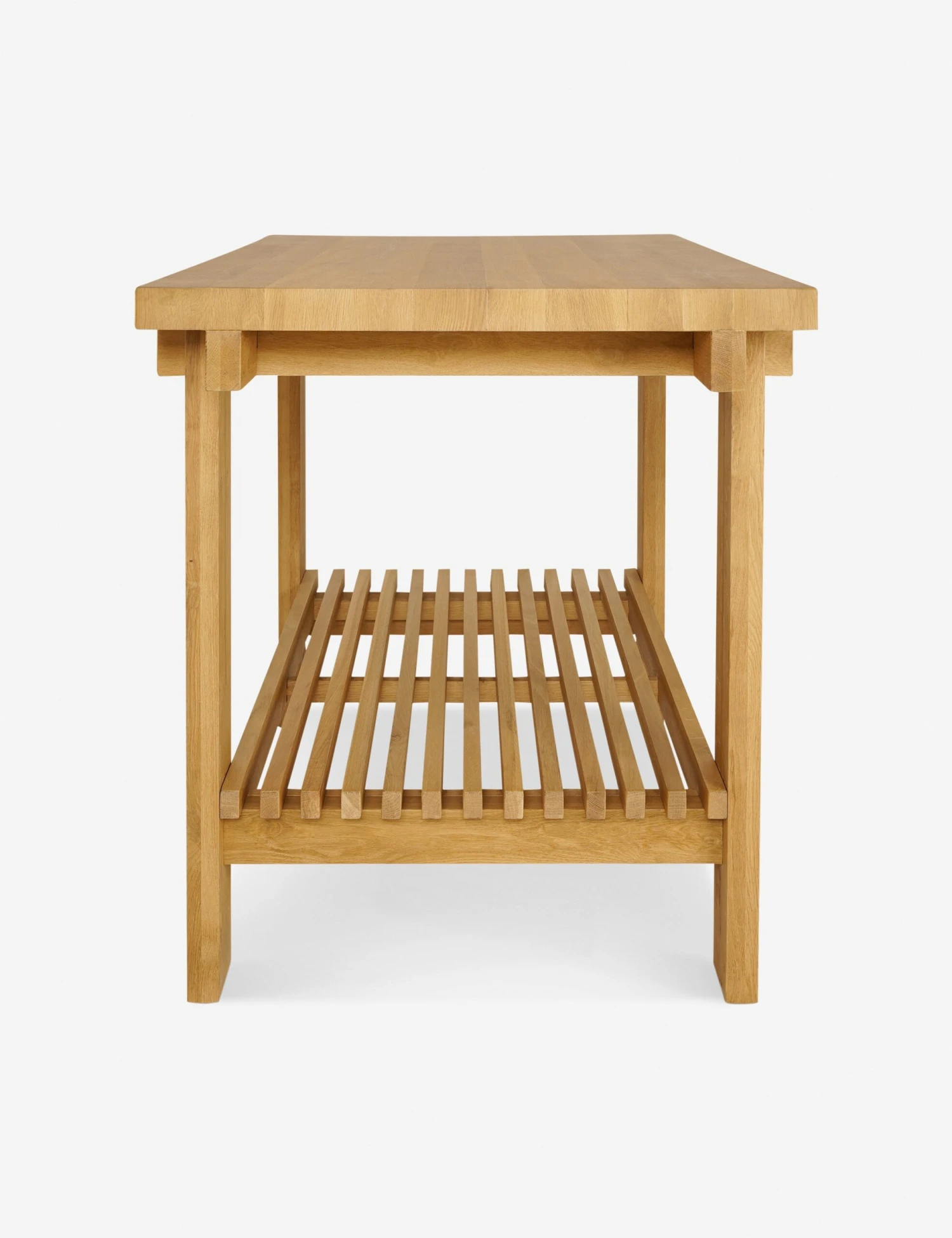 Whether your space is a rustic renovation or you are just looking to bring craftsman appeal to a busy kitchen, the Wright table is a timeless addition. This sturdy wood table sits counter-height with a lower shelf for added storage. Float in the middle of the room as a kitchen island or style as a tall kitchen table that can double for food prep and baking.